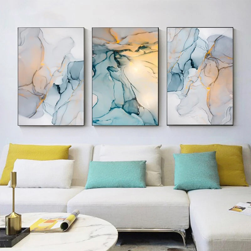 Abstract Fantasy Liquid Marble Print Wall Art Fine Art Canvas Prints Blue Jade Green Contemporary Pictures For Office Or Living Room Decor 7 Colors