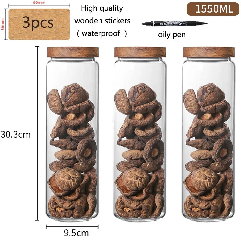 Description: Airtight Food Storage Jars With Wooden Lid.