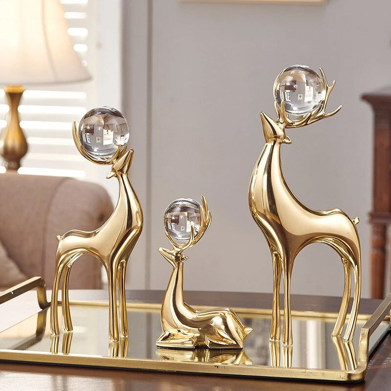 Description: Golden Deer Figurine Embellished With Crystal Ball.