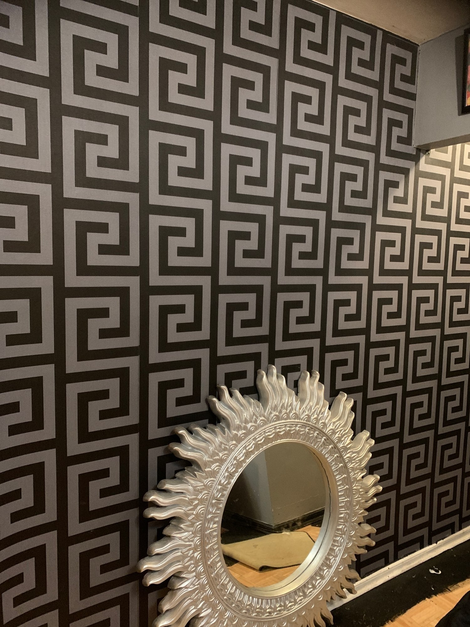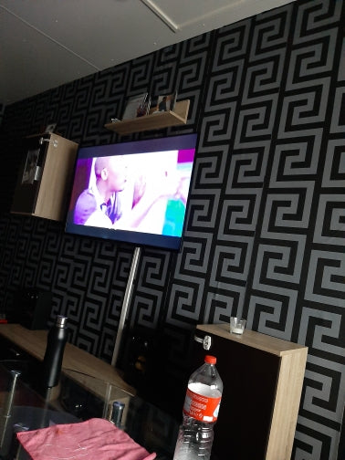 Bold Luxury Greek Tiles Style Geometric Wallpaper Satin Effect Wall Paper For Living Room Bedroom Salon Boutique (10mtr Roll).