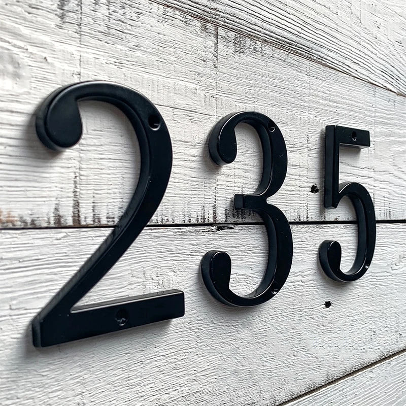 Modern Classic Black House Number For Front Door Big 4" Numbers Zinc Alloy Lacquered Finish Numbers For Outdoor Mailbox Home Signage Digits #0-9