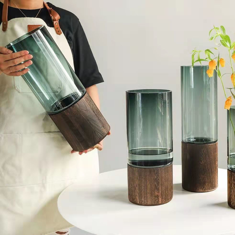 Elegant Nordic Hydroponic Plant Glass Vase with Durable Wood Base - Perfect for Home and Office Decor