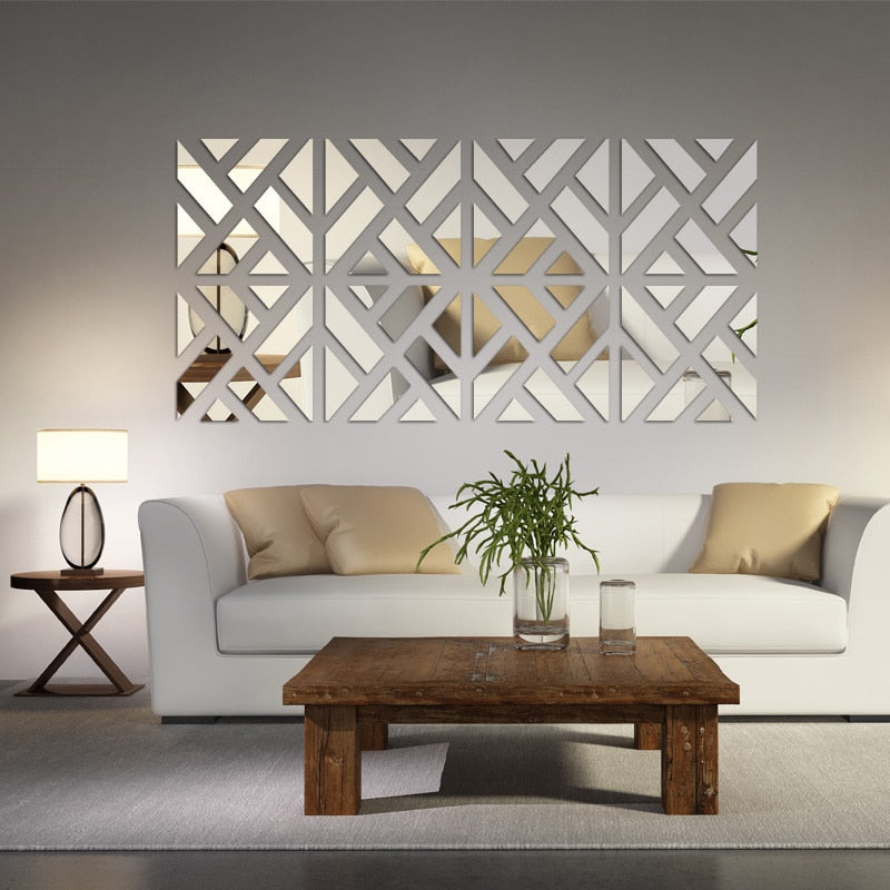 Geometric Mosaic Mirror Wall Mural Removable Mirrored Acrylic Wall Stickers Creative Artistic DIY For Living Room Bedroom Wall Decoration