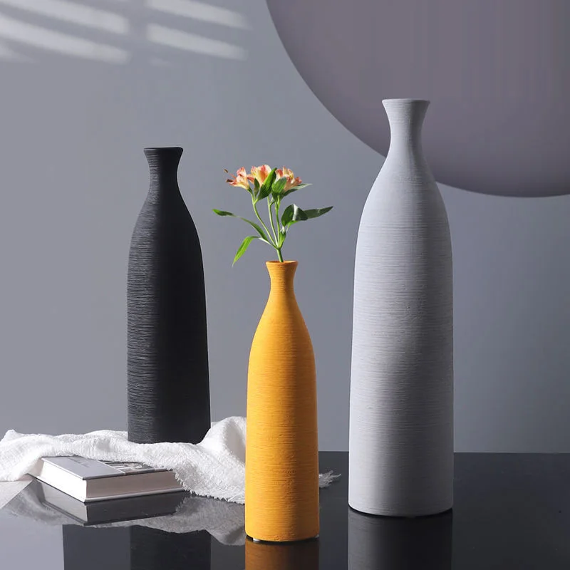 Premium Ceramic Sculptured Nordic Vase – Modern Minimalist Textural Design Decor for Contemporary Living Room, Bedroom & Tabletop Styling
