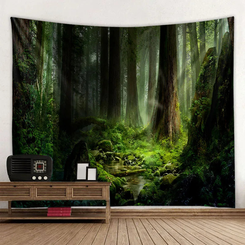 Immerse yourself in the tranquility of nature with our Lush Forest Hanging Tapestry. This exquisite wall decoration showcases an exotic fantasy landscape, bringing a creative touch to your living room or bedroom. It’s more than just a tapestry, it’s a piece of artistic home decor that transforms your space into a serene forest retreat. Perfect for those who appreciate art and nature in their everyday surroundings.