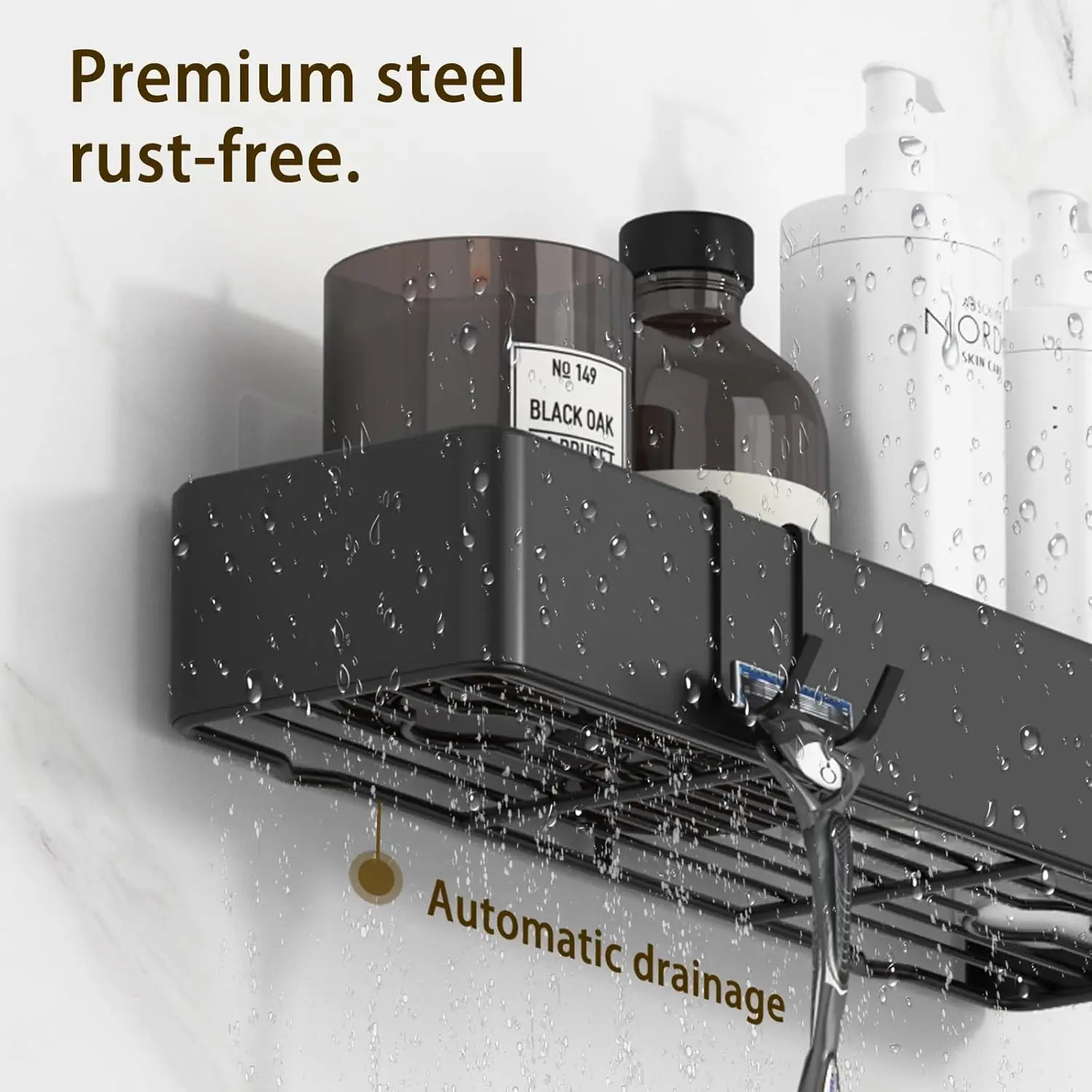 No-Drill Bathroom Cosmetics Organizer – Sleek & Modern Wall-Mounted Shower Shelves with Soap Holder & Hooks