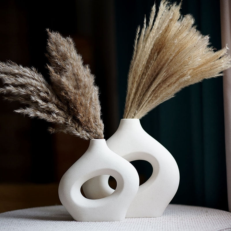 This beautiful vase is made of high-quality ceramic and features a unique donut-shaped design that can hold pampas grass, dried flowers, or other plants. The vase comes in various colors and sizes to suit your preference and space. Whether you place it on your table, desk, shelf, or windowsill, the Nordic Ceramic Vase will enhance your contemporary interior decor and create a cozy atmosphere. Order yours today and enjoy free shipping!