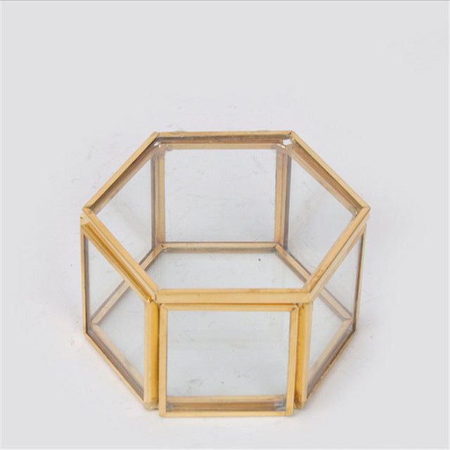 Nordic Style Geometric Polygon Transparent Gold And Glass Jewelry Storage Box Desktop Display Succulents Cactus Plant Pot