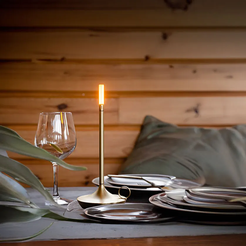 Retro Cordless Candle Stick LED Night Light Rechargeable Portable Desktop Coffee Table Light For Bedside Table