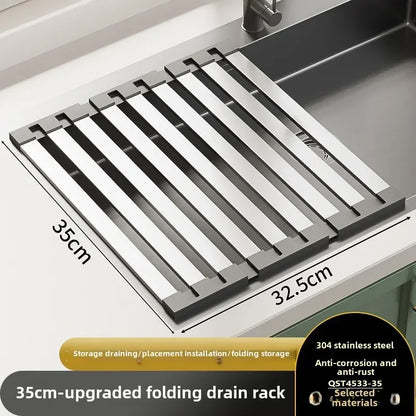 StreamLine Dish Rack – Folding Retractable Sink Rack Grade 304 Stainless Steel Kitchen Drainage Rack Worktop Organizer for Clean Countertop